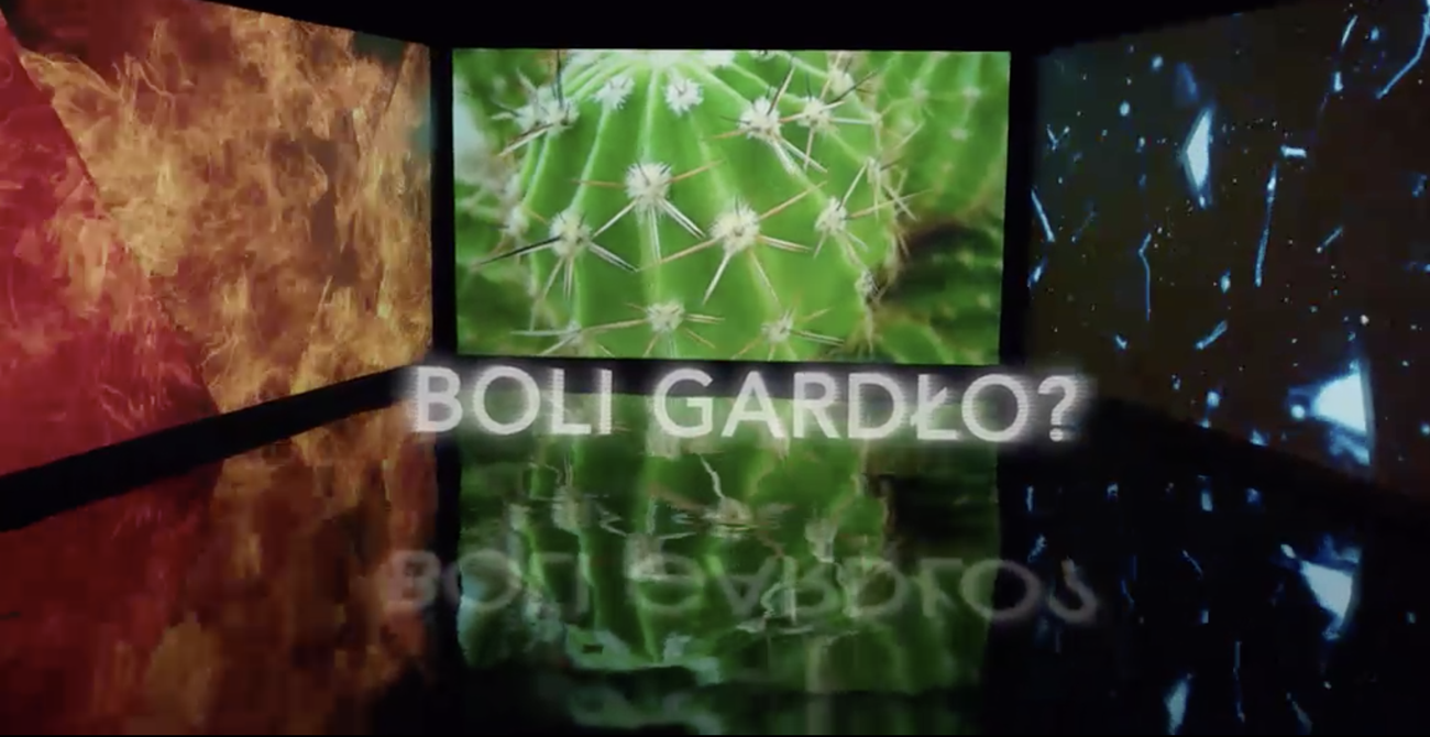 Kampania ruszyła pod hasłem ,,A jak Ciebie boli gardło?”. Za pomocą mocnych metafor wizualnych ukazuje, jak się czujemy podczas zmagań z bólem gardła. Efekt komunikacyjny potęguje wykorzystanie w reklamie wizerunku konsumentów, z którymi widz może się utożsamić podczas scen przeżywania zarówno bólu, jak i ulgi po zażyciu leku – expressu na ból gardła. Dodatkowo, reklama podkreśla innowacyjny skład leku i jego równoczesne działanie w 3 obszarach: zwalczania bakterii, wirusów i bólu gardła.